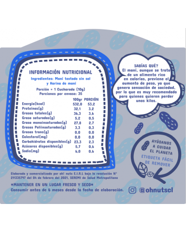 Elaborada de maní tostado + harina de maní, esta harina entrega un plus proteico al producto sin cambiar su sabor, pero reduce su cremosidad.